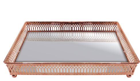 Bandeja decorativa , base de espelho, contorno de metal, que serve de base para objetos diversos, como velas, maquiagem, enfeites, enfim, porta-chaves para aparador, ou suporte para galheteiros. Muito elegante!
